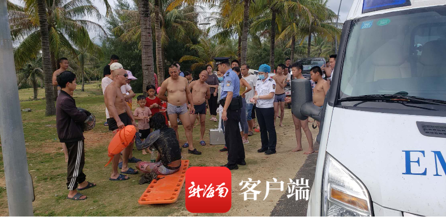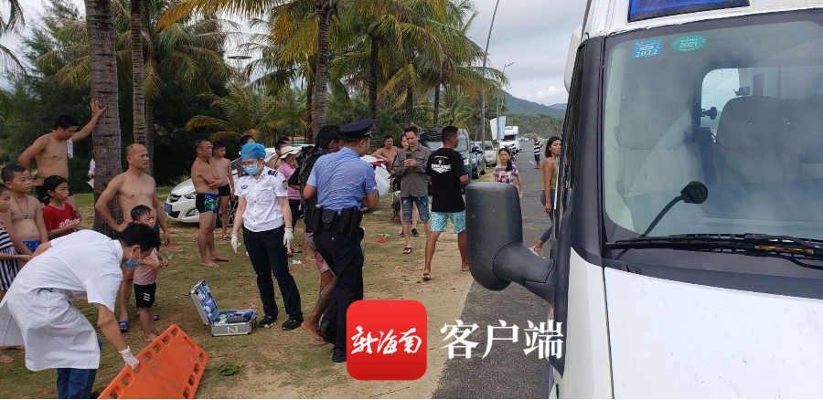 當天下午,海南省公安廳海岸警察總隊(籌備組)萬寧支隊新梅派出所接警后也趕到現場。據民警介紹,四人因沖浪時被暗流卷拖導致溺水,后被現場一名游客(黃劍青)所救,落水者被救上岸后,兩名身體感到不適的落水者代某、喻某被聞訊趕過來的120急救車接走,而另外兩人武某、李某則表示身體無礙并自行離開。